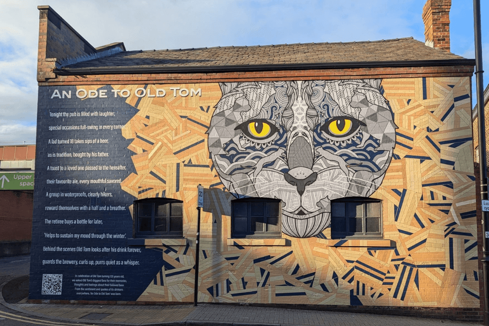 Old Tom celebrates its 125 birthday with celebrations across the pub estate and a tribute on the side of Stockport pub, the Arden Arms. The milestone seems the beer return to its retro label.