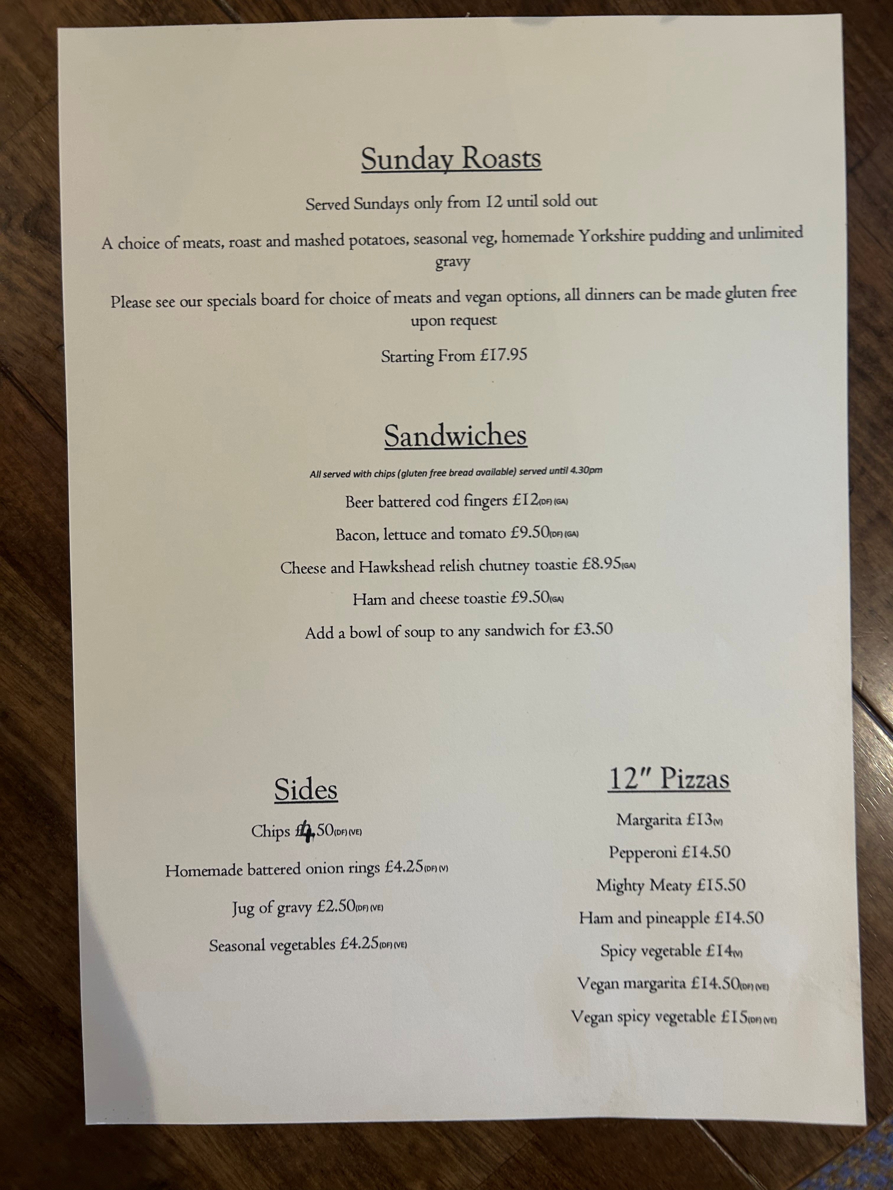 Enjoy home-cooked pub classics in the heart of the Lake District. Our menu has something for everyone, including smaller bites and a children's menu too. We also offer sandwiches and toasties until 4:30pm, along with homemade pizzas that are available to sit in or takeaway. Plus, we cater to dietary preferences with plenty of gluten-free options, vegan dishes, and even vegan-friendly alcohol available. Take a look at our menus below.